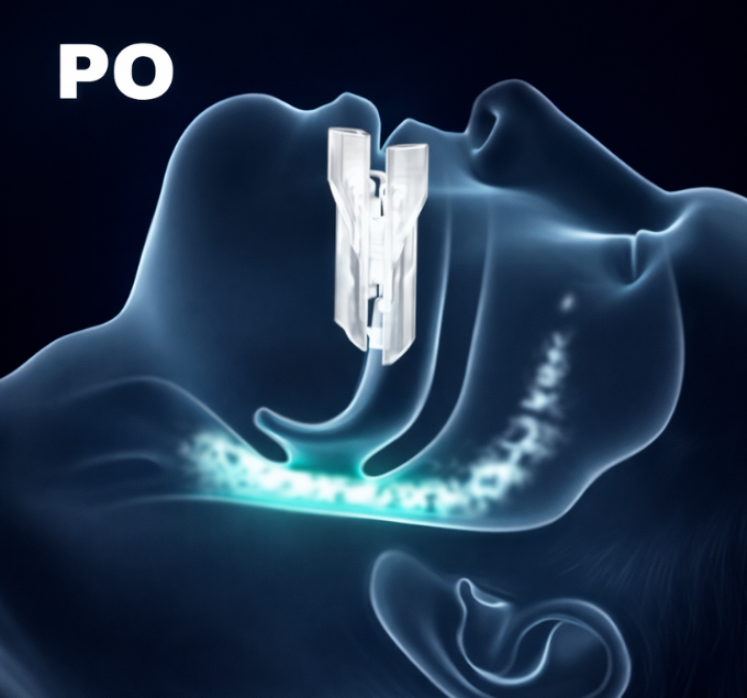 SleepsUs™ je mandibulárna advancement dlaha (MAD) – zariadenie, ktoré sa nosí v ústach počas spánku a jemne posúva spodnú čeľusť dopredu. Tento posun o 3-8mm zabraňuje tomu, aby jazyk padol dozadu a zablokoval dýchacie cesty. Keď sú cesty otvorené, vzduch prúdi voľne a chrápanie zmizne. Rovnaký princíp používajú zubári v zariadeniach za stovky až tisíce eur – SilentNight™ prináša túto technológiu za zlomok ceny s možnosťou nastavenia doma.